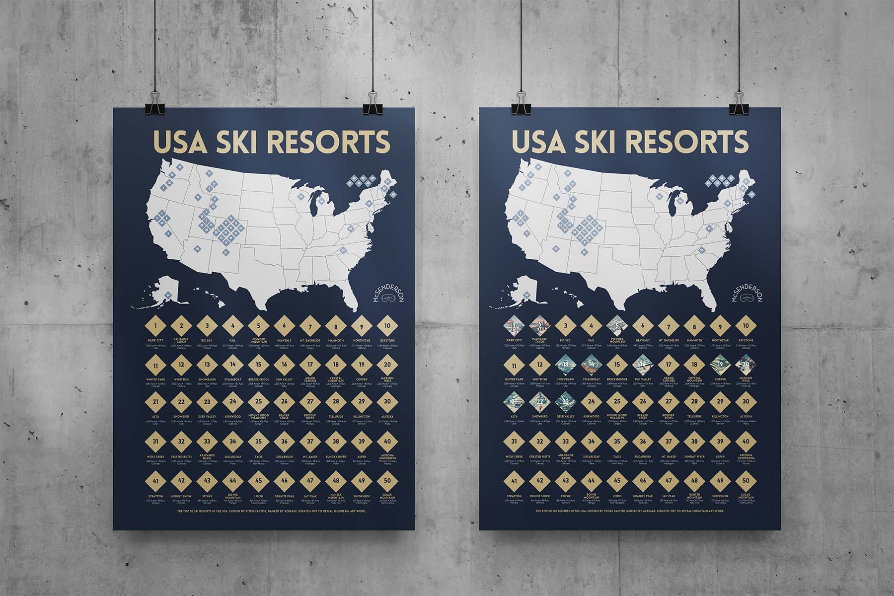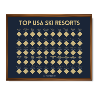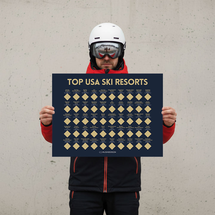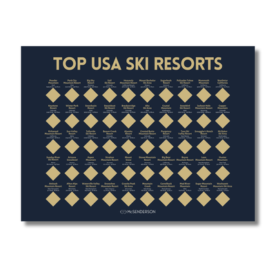 Introducing the ultimate tool for avid skiers, snowboarders, and hikers - the McSenderson USA Top 50 Resorts Scratch-Off Posters! This beautifully designed poster / map features the top 50 major ski resorts with resort acreage and number of runs.