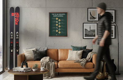 Scratch off each resort as you ski it with gold coating that reveals custom artwork beneath. Clean, modern design that looks great on any wall whether it is a lodge, cabin, home, or office. The perfect gift for passionate skiers and snowboarders that will last a lifetime.